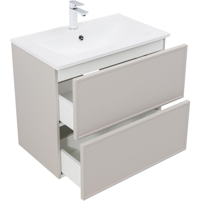 Тумба под раковину Aquanet Арт 343967 — практичное и стильное решение для ванной комнаты. Корпус и фасады изготовлены из МДФ, покрытого суперматовой пленкой ПВХ повышенной прочности с эффектом «Soft touch». Покрытие не только приятное на ощупь, но и обеспечивает надежную защиту от влаги. Полимерная структура пленки не пропускает воду, предотвращая деформацию и сохраняя внешний вид мебели надолго.