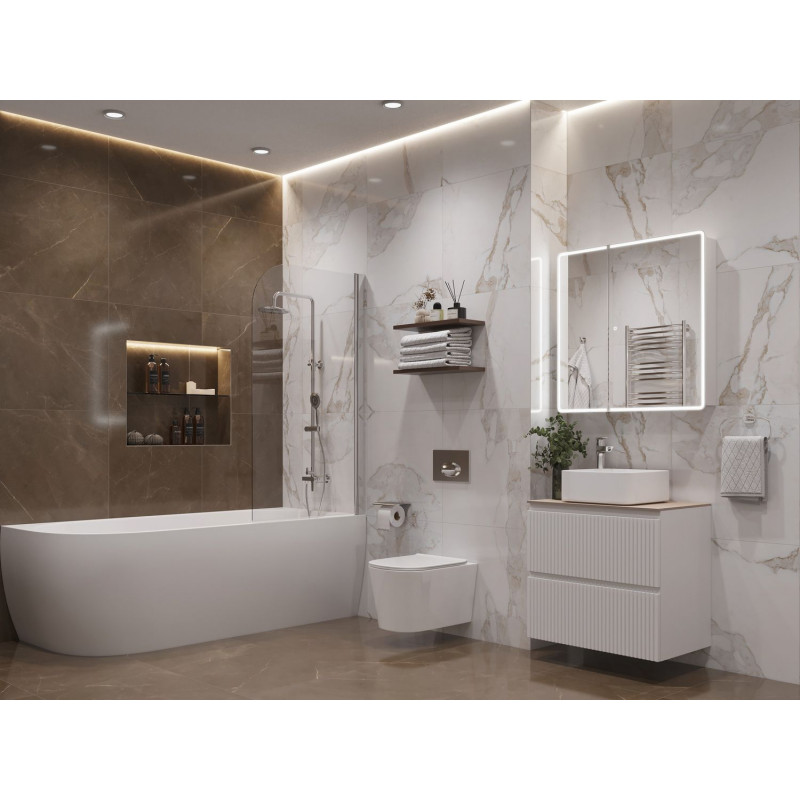 Тумба под раковину Aquanet Джейн 335423 — практичное и стильное решение для ванной комнаты. Корпус и фасады изготовлены из МДФ, покрытого суперматовой пленкой ПВХ повышенной прочности с эффектом «Soft touch». Покрытие не только приятное на ощупь, но и надежно защищает мебель от влаги. Полимерная структура пленки не пропускает воду, поэтому тумба не деформируется со временем и сохраняет первоначальный вид.