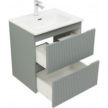 Тумба под раковину Aquanet Джейн 335432 — практичное и стильное решение для ванной комнаты. Корпус и фасады изготовлены из МДФ, покрытого суперматовой пленкой ПВХ повышенной прочности с эффектом «Soft touch». Покрытие не только приятное на ощупь, но и надежно защищает мебель от влаги. Полимерная структура пленки не пропускает воду, поэтому тумба не деформируется со временем и сохраняет первоначальный вид.
