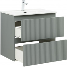 Тумба под раковину Aquanet Джейн 335433 — практичное и стильное решение для ванной комнаты. Корпус и фасады изготовлены из МДФ, покрытого суперматовой пленкой ПВХ повышенной прочности с эффектом «Soft touch». Покрытие не только приятное на ощупь, но и надежно защищает мебель от влаги. Полимерная структура пленки не пропускает воду, поэтому тумба не деформируется со временем и сохраняет первоначальный вид.