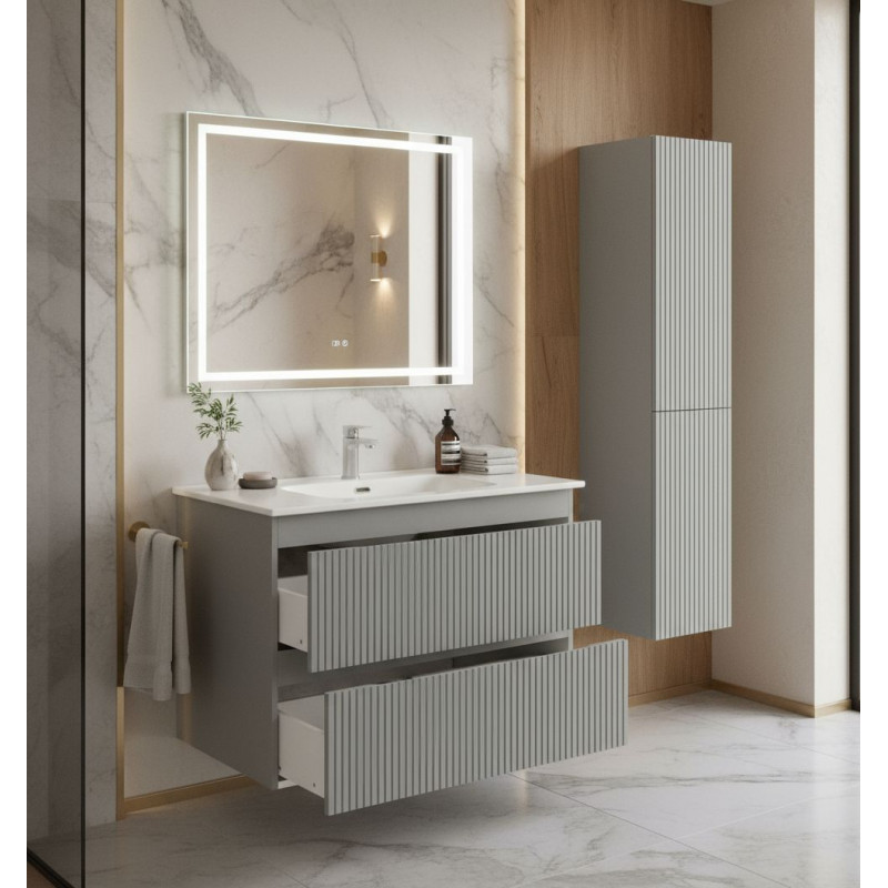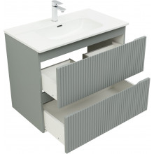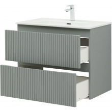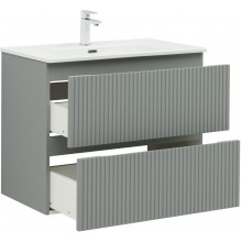 Тумба под раковину Aquanet Джейн 335434 — практичное и стильное решение для ванной комнаты. Корпус и фасады изготовлены из МДФ, покрытого суперматовой пленкой ПВХ повышенной прочности с эффектом «Soft touch». Покрытие не только приятное на ощупь, но и надежно защищает мебель от влаги. Полимерная структура пленки не пропускает воду, поэтому тумба не деформируется со временем и сохраняет первоначальный вид.