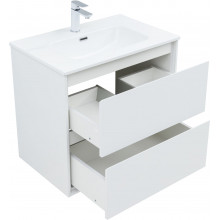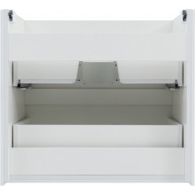 Кроме того, надёжные навесы, способные выдерживать нагрузки до 130 кг, обеспечивают уверенную поддержку раковины и всего оборудования. Внутреннее пространство тумбы организовано с умом: выдвижные ящики из ВЛДСП имеют прочное дно и направляющие частичного выдвижения, что делает их идеальными для хранения туалетных принадлежностей. Специальная пластиковая вставка под сифон в сером цвете завершает функционал тумбы, сохраняя при этом чистоту и порядок в ванной комнате.