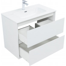 Кроме того, надёжные навесы, способные выдерживать нагрузки до 130 кг, обеспечивают уверенную поддержку раковины и всего оборудования. Внутреннее пространство тумбы организовано с умом: выдвижные ящики из ВЛДСП имеют прочное дно и направляющие частичного выдвижения, что делает их идеальными для хранения туалетных принадлежностей. Специальная пластиковая вставка под сифон в сером цвете завершает функционал тумбы, сохраняя при этом чистоту и порядок в ванной комнате.