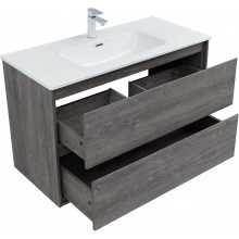 Кроме того, надёжные навесы, способные выдерживать нагрузки до 130 кг, обеспечивают уверенную поддержку раковины и всего оборудования. Внутреннее пространство тумбы организовано с умом: выдвижные ящики из ВЛДСП имеют прочное дно и направляющие частичного выдвижения, что делает их идеальными для хранения туалетных принадлежностей. Специальная пластиковая вставка под сифон в сером цвете завершает функционал тумбы, сохраняя при этом чистоту и порядок в ванной комнате.