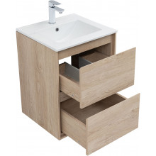 Кроме того, надёжные навесы, способные выдерживать нагрузки до 130 кг, обеспечивают уверенную поддержку раковины и всего оборудования. Внутреннее пространство тумбы организовано с умом: выдвижные ящики из ВЛДСП имеют прочное дно и направляющие частичного выдвижения, что делает их идеальными для хранения туалетных принадлежностей. Специальная пластиковая вставка под сифон в сером цвете завершает функционал тумбы, сохраняя при этом чистоту и порядок в ванной комнате.