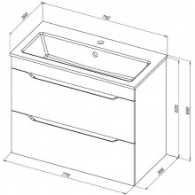 Глубина тумбы с раковиной составляет 395 мм, что делает её удобной для небольших помещений. Выдвижные ящики оснащены направляющими с доводчиками для плавного закрывания. Ручка-фрезеровка позволяет открывать ящики "за фасад", сохраняя лаконичный дизайн.