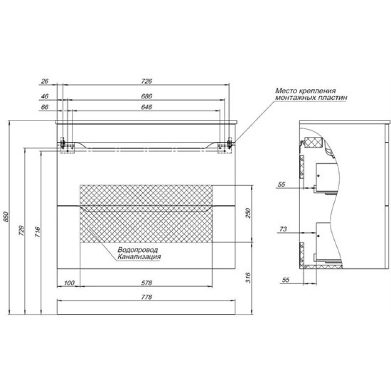 За нижним ящиком предусмотрено место для подводки коммуникаций. Тумбу можно установить на универсальные опоры высотой 200 мм.