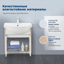 Тумба Aquanet Сидней 60 идеально подойдет для небольших ванных комнат. Ее компактные размеры не мешают размещению просторной керамической раковины с глубокой чашей. Двухцветное оформление "дуб кантри/белый" делает модель универсальной для разных стилей интерьера.