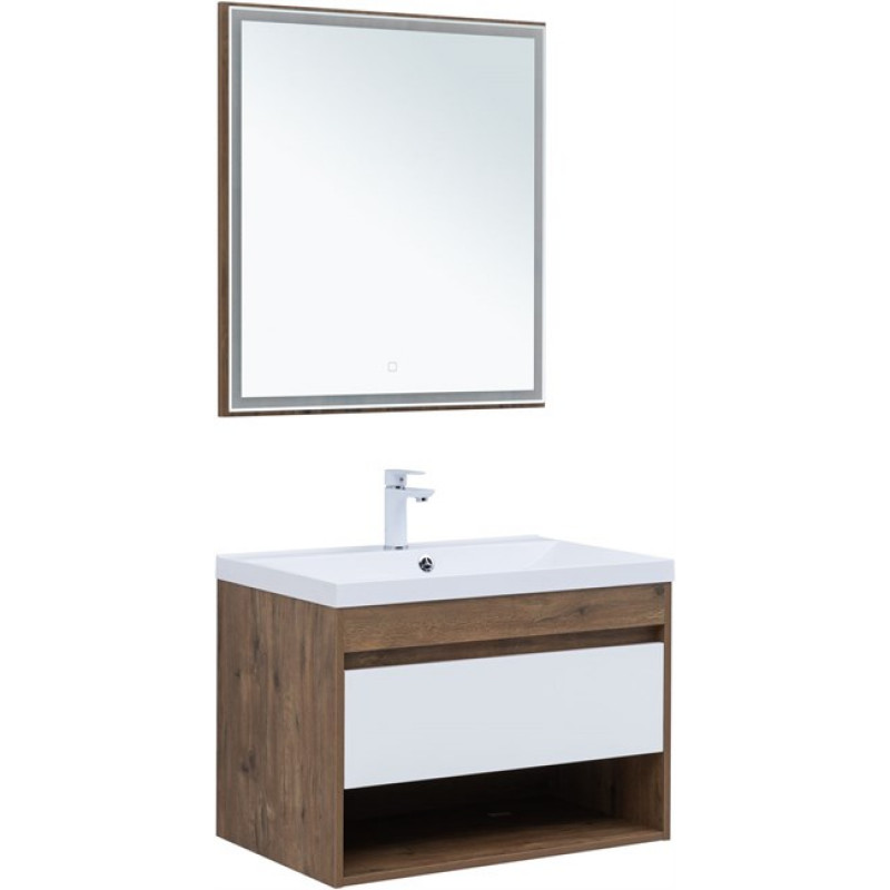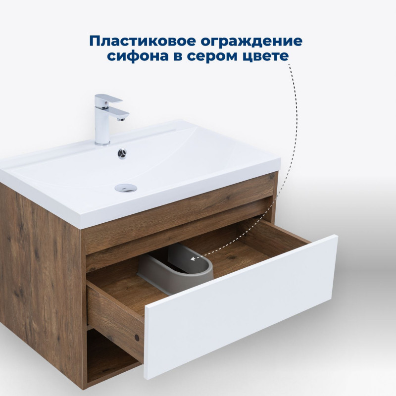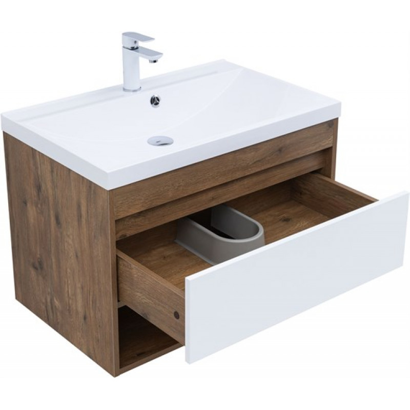 Тумба под раковину Aquanet Тренд 75 дуб рустикальный/белый сатин: Изысканное сочетание функциональности и современного дизайна.