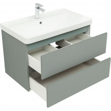 Фасады и корпуса из суперматовой пленки ПВХ обладают повышенной прочностью и эффектом «Soft touch», обеспечивая не только прекрасный внешний вид, но и приятные тактильные ощущения. Тумба оснащена двумя ящиками с механизмом доводчика, что обеспечивает плавное и бесшумное закрытие, а также высокую функциональность.