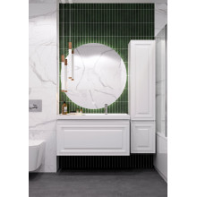 Корпус изготовлен из влагостойкой ЛДСП с покрытием эмаль белый сатин. Фасады выполнены из МДФ с таким же полуматовым покрытием. Эффект "сатин" придает поверхности ровный, слегка мерцающий вид. Такая отделка не только красива, но и практична — она меньше пачкается и проще в уходе по сравнению с матовой эмалью.