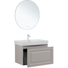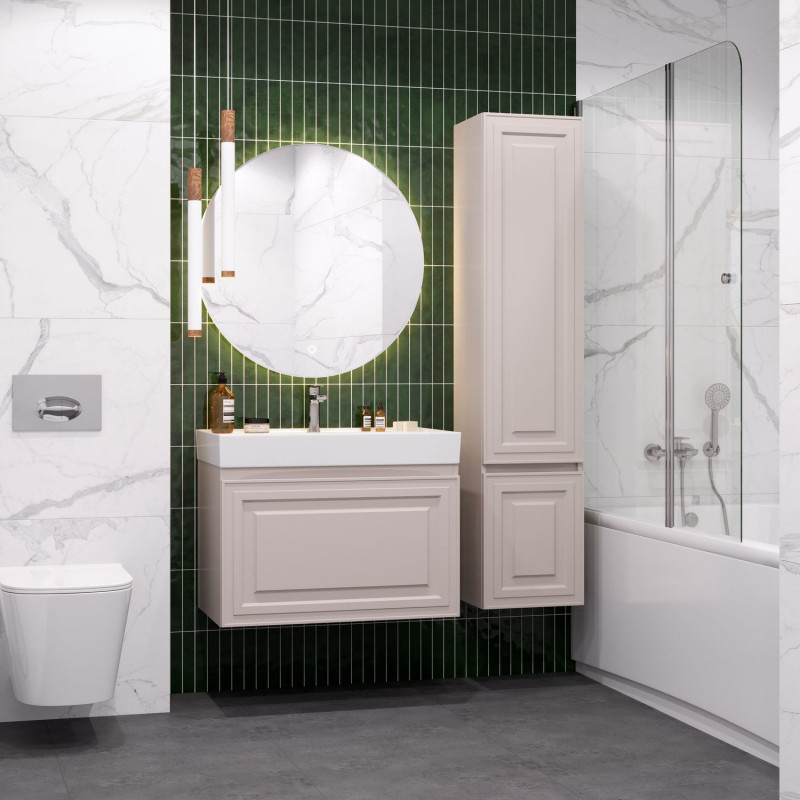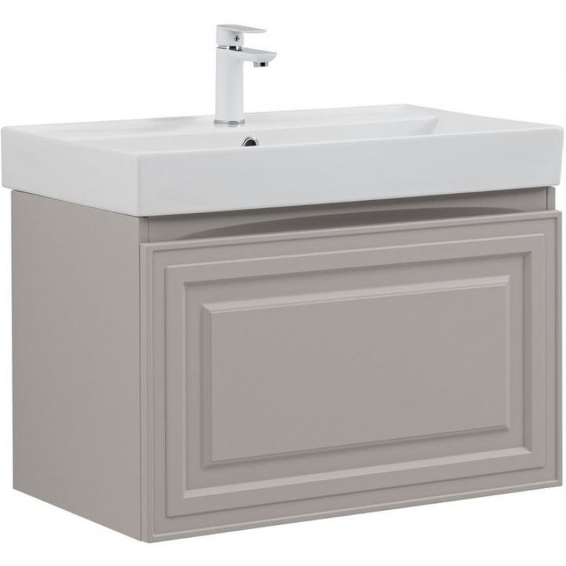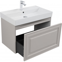 Тумба с раковиной Aquanet Агата 345487/242338 — практичное и стильное решение для ванной комнаты. Корпус и фасады изготовлены из МДФ с покрытием пленкой ПВХ. Пленка имеет эффект Soft touch, создавая приятную бархатистую поверхность. Она устойчива к царапинам и влаге, сохраняя внешний вид надолго.