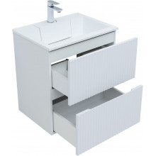 Тумба с раковиной Aquanet Джейн 313284/181907 — практичное и стильное решение для ванной комнаты. Корпус и фасады изготовлены из МДФ, покрытого суперматовой пленкой ПВХ повышенной прочности с эффектом «Soft touch». Покрытие не только приятное на ощупь, но и надежно защищает мебель от влаги. Полимерная структура пленки не пропускает воду, поэтому тумба не деформируется со временем и сохраняет первоначальный вид.