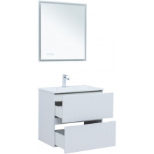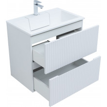 Тумба с раковиной Aquanet Джейн 313285/182523 — практичное и стильное решение для ванной комнаты. Корпус и фасады изготовлены из МДФ, покрытого суперматовой пленкой ПВХ повышенной прочности с эффектом «Soft touch». Покрытие не только приятное на ощупь, но и надежно защищает мебель от влаги. Полимерная структура пленки не пропускает воду, поэтому тумба не деформируется со временем и сохраняет первоначальный вид.