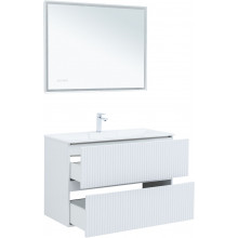 Тумба с раковиной Aquanet Джейн 313288/222717 — практичное и стильное решение для ванной комнаты. Корпус и фасады изготовлены из МДФ, покрытого суперматовой пленкой ПВХ повышенной прочности с эффектом «Soft touch». Покрытие не только приятное на ощупь, но и надежно защищает мебель от влаги. Полимерная структура пленки не пропускает воду, поэтому тумба не деформируется со временем и сохраняет первоначальный вид.