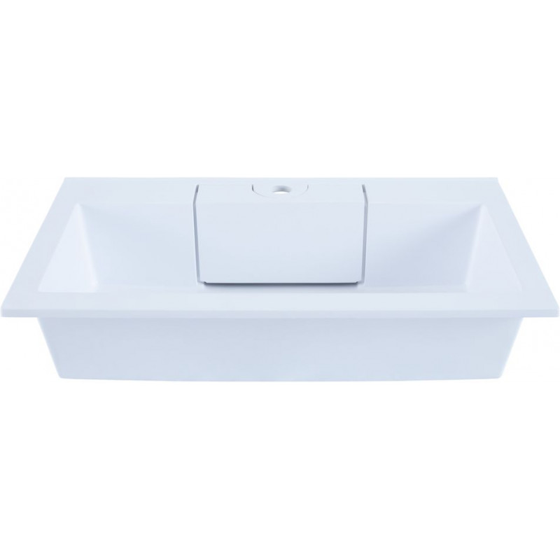 Раковина-столешница Aquanet Фортуна 182523 имеет уникальную конструкцию слива: вместо привычного расположения по центру, он находится в скрытом отсеке под съемной крышкой. Смещение слива и сифона к стене, в сторону канализационного отвода, избавляет от необходимости менять устройство верхнего ящика тумбы и делать в нем выемку. Теперь он свободно передвигается под раковиной и имеет большую вместимость.