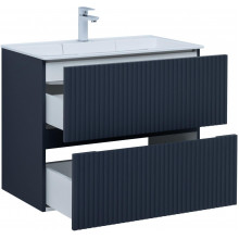 Тумба с раковиной Aquanet Джейн 313302/187094 — практичное и стильное решение для ванной комнаты. Корпус и фасады изготовлены из МДФ, покрытого суперматовой пленкой ПВХ повышенной прочности с эффектом «Soft touch». Покрытие не только приятное на ощупь, но и надежно защищает мебель от влаги. Полимерная структура пленки не пропускает воду, поэтому тумба не деформируется со временем и сохраняет первоначальный вид.