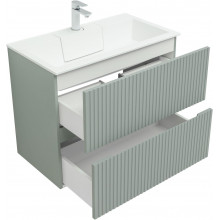 Тумба с раковиной Aquanet Джейн 313318/187094 — практичное и стильное решение для ванной комнаты. Корпус и фасады изготовлены из МДФ, покрытого суперматовой пленкой ПВХ повышенной прочности с эффектом «Soft touch». Покрытие не только приятное на ощупь, но и надежно защищает мебель от влаги. Полимерная структура пленки не пропускает воду, поэтому тумба не деформируется со временем и сохраняет первоначальный вид.
