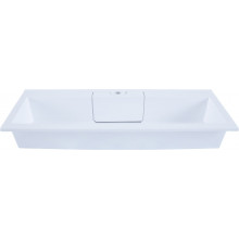 Раковина-столешница Aquanet Фортуна 222717 имеет уникальную конструкцию слива: вместо привычного расположения по центру, он находится в скрытом отсеке под съемной крышкой. Смещение слива и сифона к стене, в сторону канализационного отвода, избавляет от необходимости менять устройство верхнего ящика тумбы и делать в нем выемку. Теперь он свободно передвигается под раковиной и имеет большую вместимость.