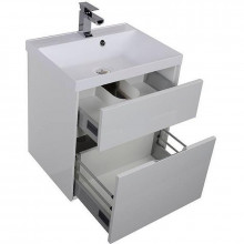 Тумба с раковиной Акванет Латина — новое предложение для тех, кто решил создать ванную комнату в стиле «модерн». Современные лаконичные формы такой мебели позволяют оснащать даже небольшие по площади ванные комнаты весьма рационально. Тумба сравнительно компактна, в то же время вместительные отделения двух ящиков тумбы сокроют в себе белье и полотенца. Среди достоинств тумбы Латина — хромированные ручки выдвижных ящиков с доводчиками плавного закрывания и глубокая прямоугольная раковина из литьевого мрамора, что очень актуально для современных интерьеров. Белое глянцевое покрытие «Латины» соответствует представлениям о чистоте и здоровье и гармонирует с белизной ванны, кабины или душевого уголка в ванной комнате.