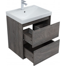 Кроме того, надёжные навесы, способные выдерживать нагрузки до 130 кг, обеспечивают уверенную поддержку раковины и всего оборудования. Внутреннее пространство тумбы организовано с умом: выдвижные ящики из ВЛДСП имеют прочное дно и направляющие частичного выдвижения, что делает их идеальными для хранения туалетных принадлежностей. Специальная пластиковая вставка под сифон в сером цвете завершает функционал тумбы, сохраняя при этом чистоту и порядок в ванной комнате.