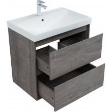 Кроме того, надёжные навесы, способные выдерживать нагрузки до 130 кг, обеспечивают уверенную поддержку раковины и всего оборудования. Внутреннее пространство тумбы организовано с умом: выдвижные ящики из ВЛДСП имеют прочное дно и направляющие частичного выдвижения, что делает их идеальными для хранения туалетных принадлежностей. Специальная пластиковая вставка под сифон в сером цвете завершает функционал тумбы, сохраняя при этом чистоту и порядок в ванной комнате.