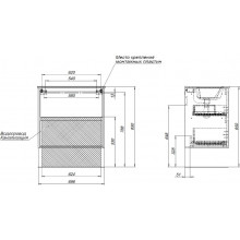 Кроме того, надёжные навесы, способные выдерживать нагрузки до 130 кг, обеспечивают уверенную поддержку раковины и всего оборудования. Внутреннее пространство тумбы организовано с умом: выдвижные ящики из ВЛДСП имеют прочное дно и направляющие частичного выдвижения, что делает их идеальными для хранения туалетных принадлежностей. Специальная пластиковая вставка под сифон в сером цвете завершает функционал тумбы, сохраняя при этом чистоту и порядок в ванной комнате.
