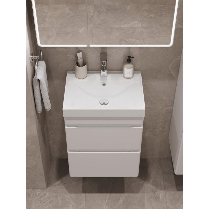 Тумба комплектуется керамической раковиной Flash mini. Раковина имеет глубокую чашу и защитно-декоративный бортик по периметру. Это обеспечивает комфортное использование и защищает столешницу от воды.