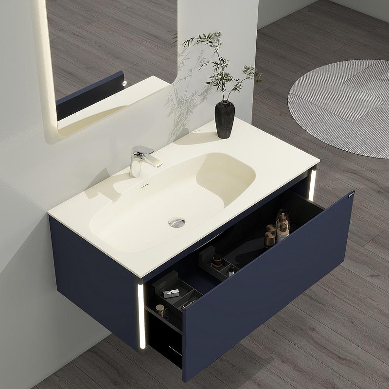 Тумба с раковиной Black&White Universe U945.1000 100 9451000 подвесная с подсветкой. Тумба с раковиной для ванной комнаты датского производителя Black&White. Раковина – столешница асимметричной конфигурации с широкой чашей и расширенным местом для хранения ванных принадлежностей выполнена из не пористого искусственного камня Corian и оснащена донным клапаном хромированного цвета.Тумба производится из девятислойной фанеры и окрашена влагостойкой эмалью глубокого синего цвета. Зона хранения оснащена одним выдвижным ящиком с высоким фасадом, механизм открывания – UniHopper с доводчиками. Важной особенностью является контурная диодная подсветка, которая расположена справа и слева от фасада, установленная на торцы корпуса.Она включается автоматически при приближении человека с расстояния  <a data-im="sng" href="https://santehnika-tut.ru/product/tumba-s-rakovinoj-black-white-universe-u9451000-100-9451000-podvesnaya-dark-blue-603651.html?ysclid=mgt2u9gsz7873165703" >Тумба с раковиной Black&White Universe U945.1000 100 9451000 подвесная Dark Blue</a>  3-х метров и гаснет спустя 30 секунд после того, как Вы покинули помещение. U 945 – продукт разработанный датскими дизайнерами, в котором собраны все тенденции актуального мебелестроения для комфортного использования зоны умывания, а также наполнения ванной комнаты комфортом и уютом.