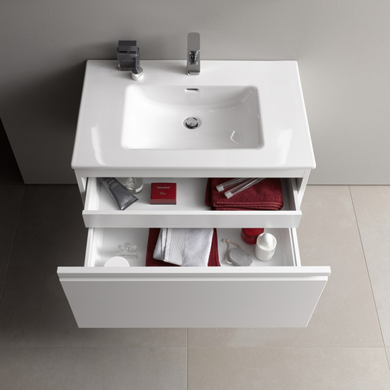 Этот мебельный комплект из обновленной коллекции Laufen Pro S является образцом современного швейцарского дизайна, где эстетика и функциональность находятся в идеальной гармонии. Он включает в себя элегантную керамическую раковину с тонкими, изящными бортиками, характерными для серии "S" (Slim), и подвесную тумбу, которая идеально повторяет ее контуры.