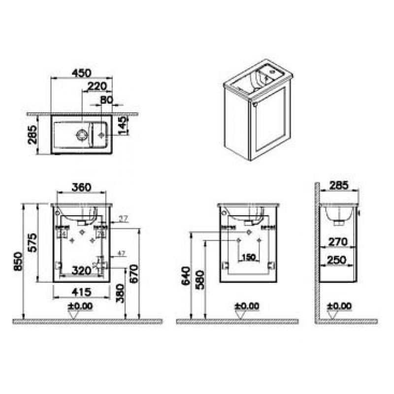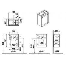 Тумба с раковиной VitrA Root Classic 68615 45 правый темно-синий матовый