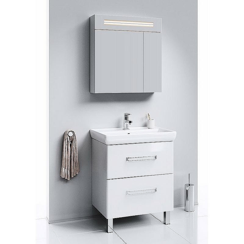 Тумба с раковиной Aqwella Neo Neo.01.07/A191645 белая, с глянцевой поверхностью, с двумя ножками, с двумя выдвижными ящиками. Для использования в ванных комнатах с повышенной влажностью.