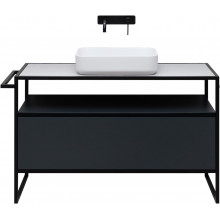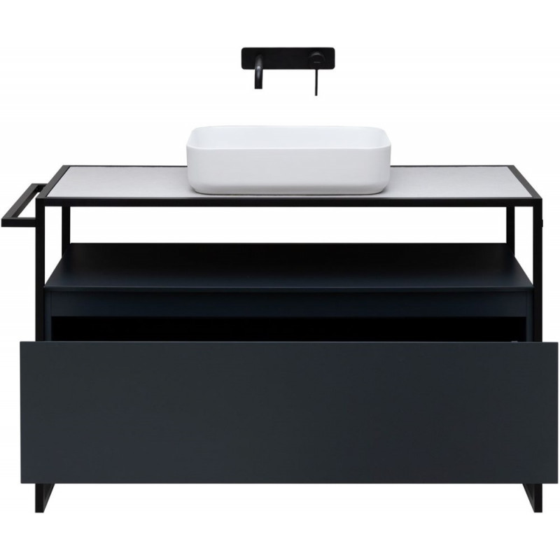 Оригинальная коллекция в стиле ЛОФТ. Столешница из керамогранита устанавливается внутрь профиля. Зеркало PRIORITY повторяет линии каркасов тумбы и пенала. Металлические каркасы выполнены в эксклюзивных цветах. Отделка брашированием подчеркивает особую эстетику мебели и является вариантом финишной отделки с антикоррозийными свойствами.