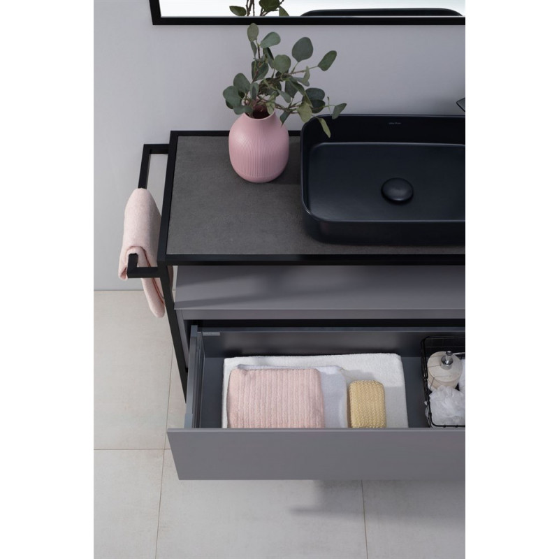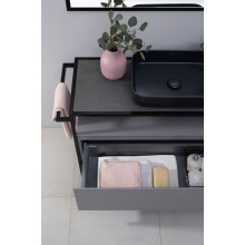 • Стильные каркасы тумб и пеналов выполнены из металла, имеют брашированную поверхность с нанесением цвета путем анодирования.