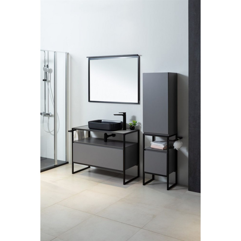 Оригинальная коллекция в стиле ЛОФТ. Столешница из керамогранита устанавливается внутрь профиля. Зеркало PRIORITY повторяет линии каркасов тумбы и пенала. Металлические каркасы выполнены в эксклюзивных цветах. Отделка брашированием подчеркивает особую эстетику мебели и является вариантом финишной отделки с антикоррозийными свойствами.