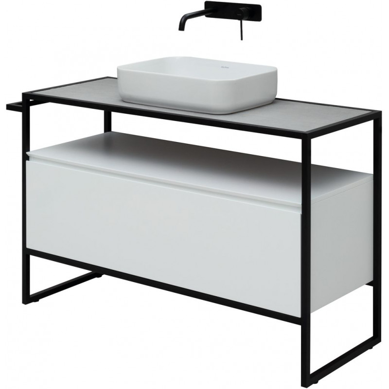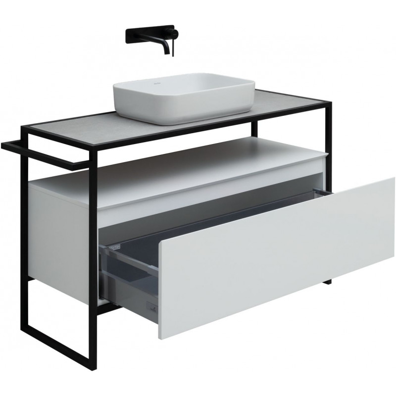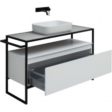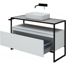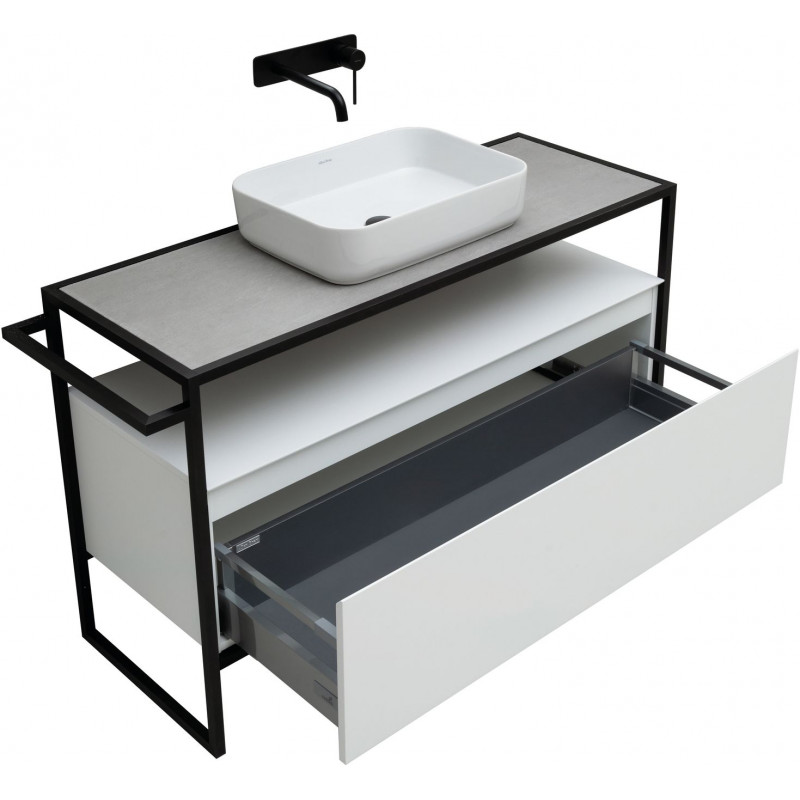 Оригинальная коллекция в стиле ЛОФТ. Столешница из керамогранита устанавливается внутрь профиля. Зеркало PRIORITY повторяет линии каркасов тумбы и пенала. Металлические каркасы выполнены в эксклюзивных цветах. Отделка брашированием подчеркивает особую эстетику мебели и является вариантом финишной отделки с антикоррозийными свойствами.