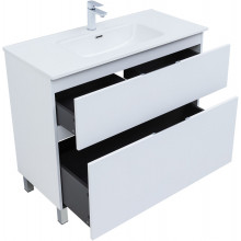 Тумба под раковину Aquanet Алвита New 100 напольная, белый матовый. Внутренние детали изготовлены из влагостойкой ЛДСП в цвете антрацит.