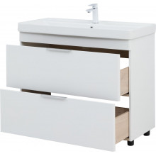 Тумба под раковину Aquanet Ирис new 339257 - это идеальное решение для современного интерьера ванной комнаты. Изготовленная из влагостойкой ЛДСП, она гарантирует долговечность и надежность даже в условиях повышенной влажности. Фасад из влагостойкого МДФ, покрытый высококачественной эмалью, не только добавляет эстетической привлекательности, но и делает изделие легким в уходе. Белый глянец создает атмосферу чистоты и простора, визуально расширяя пространство.