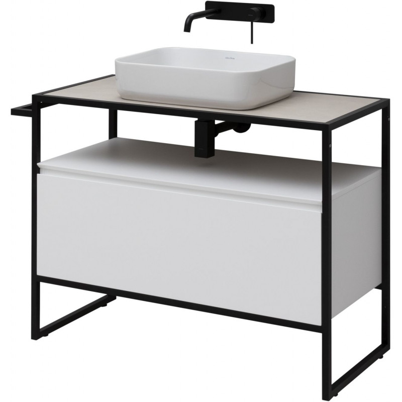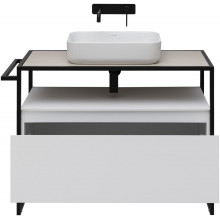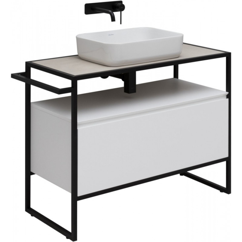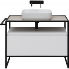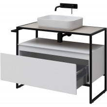 Оригинальная коллекция в стиле ЛОФТ. Столешница из керамогранита устанавливается внутрь профиля. Зеркало PRIORITY повторяет линии каркасов тумбы и пенала. Металлические каркасы выполнены в эксклюзивных цветах. Отделка брашированием подчеркивает особую эстетику мебели и является вариантом финишной отделки с антикоррозийными свойствами.