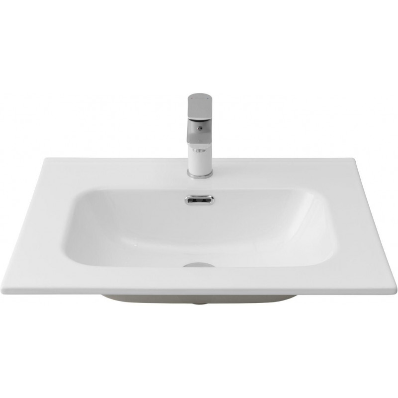 Корпус сделан из керамики белого цвета, легко отмывающейся от загрязнений влажной губкой и средствами бытовой химии без абразивных частиц. Материал экологичный, безопасный, хорошо поглощает звуки от воды. На бортике располагается отверстие для монтажа смесителя и свободное пространство для гигиенических принадлежностей. По центру глубокой чаши размещен слив. Закругленные края обеспечивают безопасность эксплуатации и сводят к минимуму вероятность получения травм.