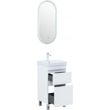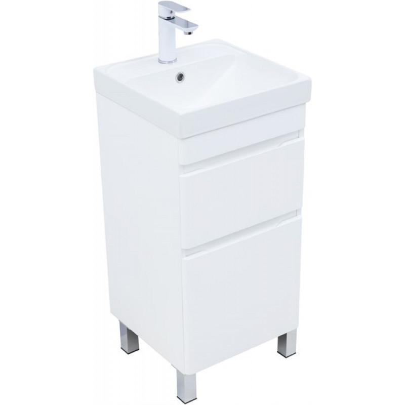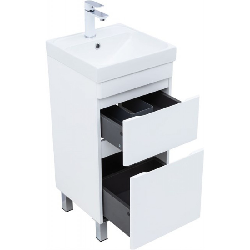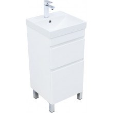 Тумба с раковиной Aquanet Слим 40 напольная, белый сатин – компактное и функциональное решение для ванной комнаты. Она сочетает лаконичный дизайн и продуманные детали. Глубина тумбы с раковиной составляет 405 мм, что делает её удобной даже для небольших помещений.