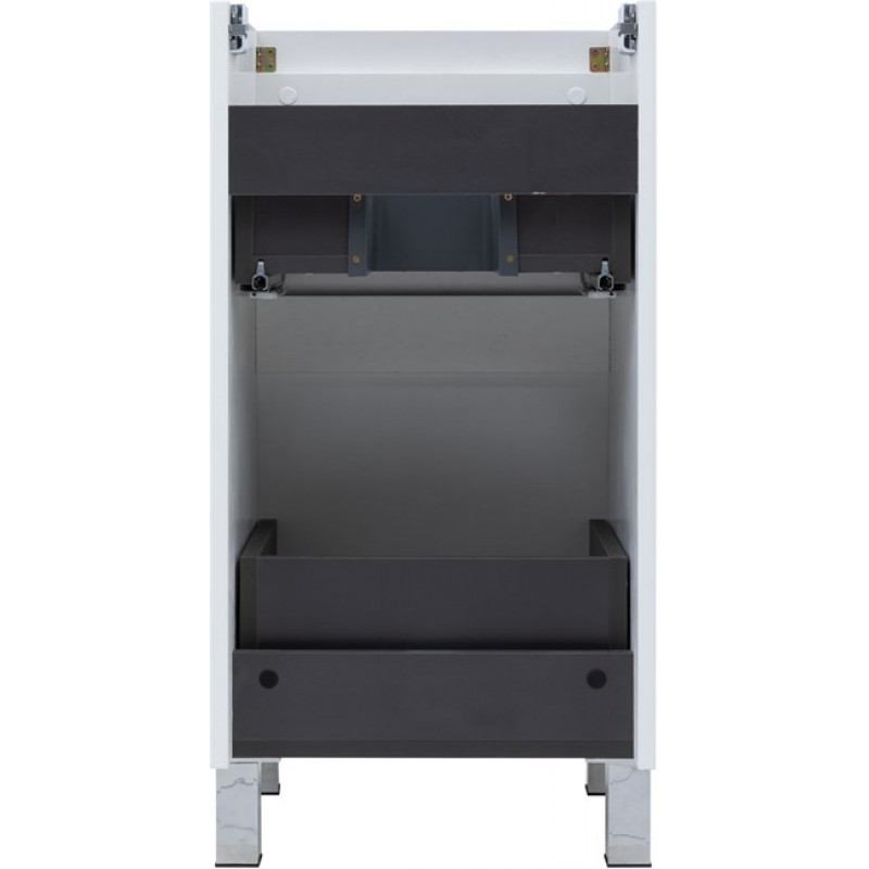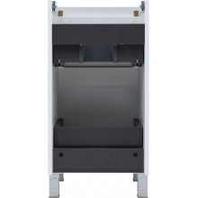 Тумба оборудована пластиковым ограждением сифона в цвете антрацит. Оно имеет прямоугольную форму и надёжно крепится к дну ящика. Дно ящиков изготовлено из влагостойкой ЛДСП толщиной 16 мм, что обеспечивает прочность и долговечность.