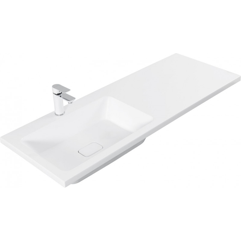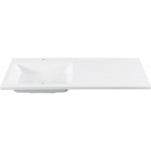 Раковина имеет левостороннюю ориентацию, что позволяет удобно расположить её в ванной комнате любой планировки. Удобство использования подчеркивается готовым отверстием под смеситель, что упрощает процесс установки.