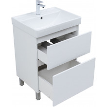 Пластиковое ограждение сифона в сером цвете аккуратно скрывает коммуникации. Прочное дно нижнего ящика, изготовленное из влагостойкой ЛДСП толщиной 16 мм, позволяет хранить даже тяжелые предметы. Предусмотренное место за нижним ящиком для подводки коммуникаций снизу упрощает монтаж и подключение сантехники.