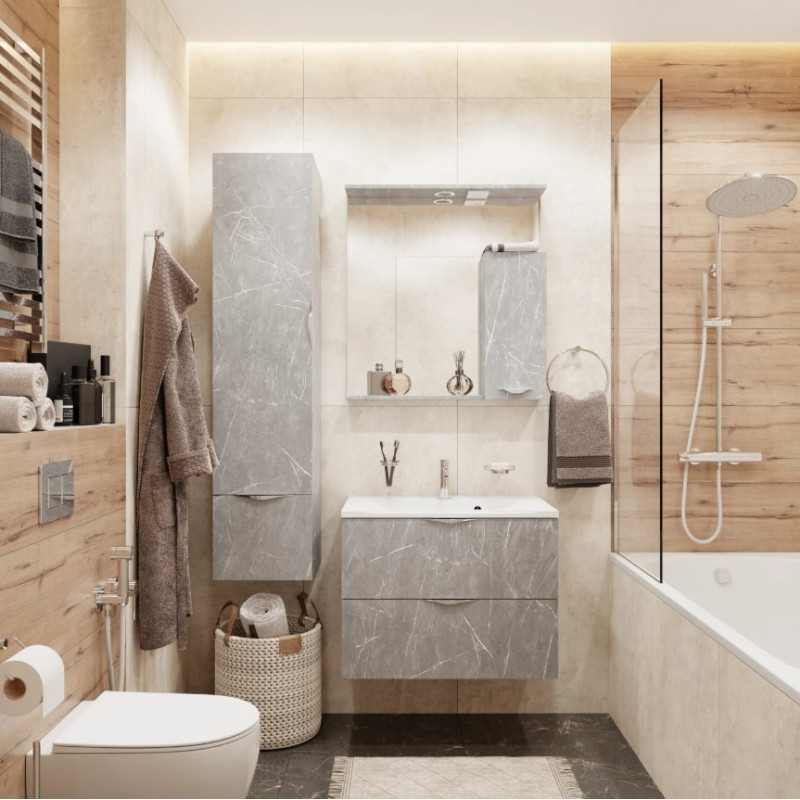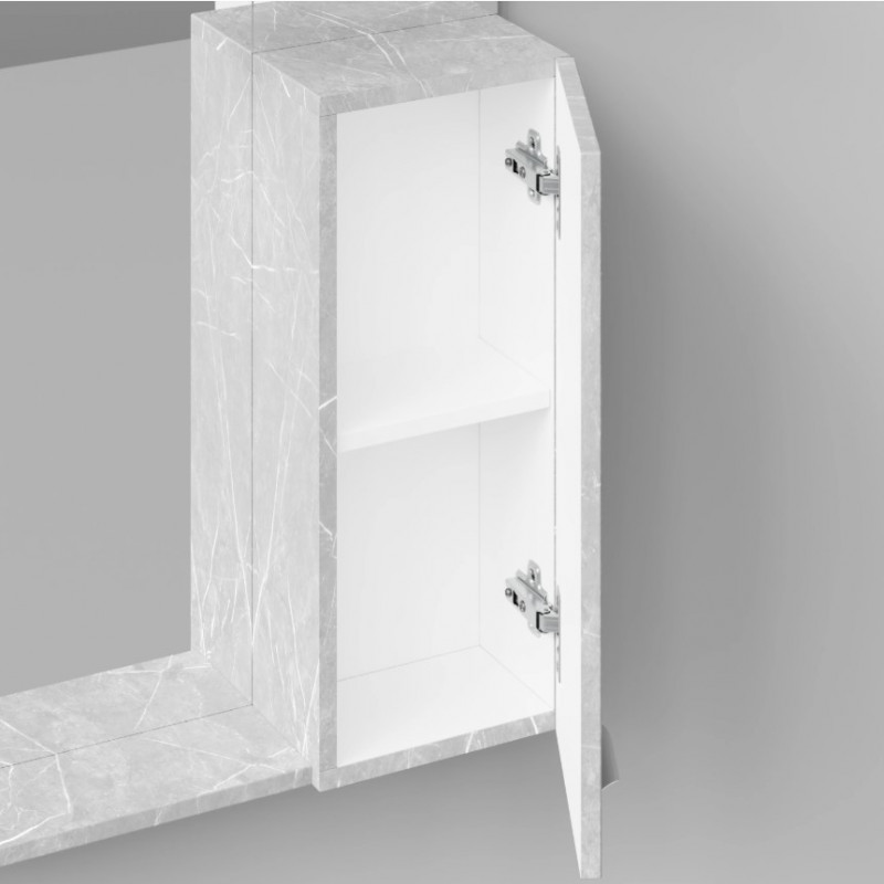 Для компактного размещения косметики и средств гигиены внутри установлена полка. Дверца на петлях с доводчиками закрывается без хлопков.