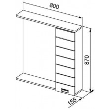 Эффектный дизайн зеркала для ванной комнаты Доминика сразу привлекает внимание своей контрастной расцветкой, придает ванному гарнитуру яркий, современный внешний вид. В плоский карниз встроена сверхэкономичная система освещения — светодиодная подсветка, рассчитанная на более чем 60 000 часов беспрерывной работы. Зеркало с полкой имеет боковой шкафчик для банных принадлежностей и гигиенических средств, дверка которого украшена ритмичным горизонтальным декором.