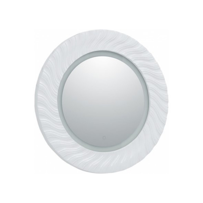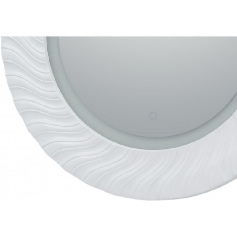 Круглое зеркало «Милан» в декоративной раме станет настоящим украшением ванной комнаты. Оно обладает характерными чертами стиля ар-деко. По широкой раме словно стилизованные солнечные лучи проходит искусная фрезеровка, изысканность которой подчеркнута белым глянцевым покрытием. Богатый декор подчеркивает LED-подсветка по внешнему краю зеркального полотна, обеспечивающая ровный загадочный свет, вносящий камерность в атмосферу ванной комнаты. Это придает помещению обстановку будуаров времен французских королей. Управлять подсветкой просто: ее включение и выключение производится с помощью сенсора, расположенного на зеркальном полотне.