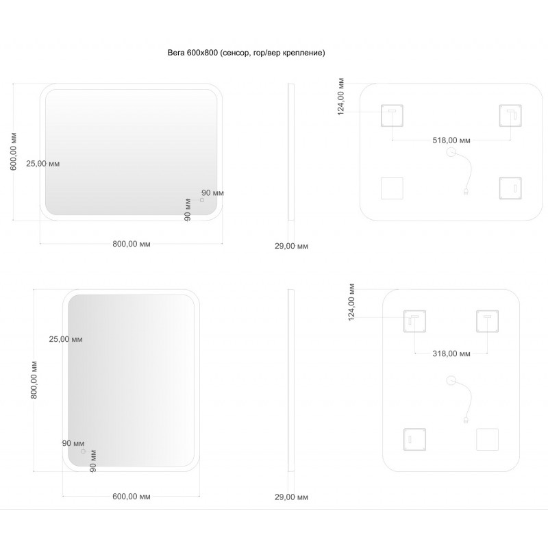 Зеркало для ванной комнаты Aquanet из коллекции Вега обладает современным дизайном и удобными функциями. Зеркало оснащено светодиодной подсветкой, которая обеспечивает яркое и равномерное освещение ванной комнаты. Сенсорный выключатель позволяет легко управлять подсветкой, а регулировка яркости позволяет адаптировать освещение под различные потребности. Это зеркало имеет возможность крепления на стену как в горизонтальном, так и вертикальном положении, что обеспечивает гибкость в установке в соответствии с дизайном ванной комнаты. Корпус зеркала изготовлен из практичного и прочного пластика, что облегчает его конструкцию и делает легким уход за ним. Функция подогрева отсутствует. Зеркало для ванной с LED подсветкой Aquanet Вега представляет собой стильное и функциональное решение, обеспечивая хорошее освещение и превосходное зеркальное отражение.
