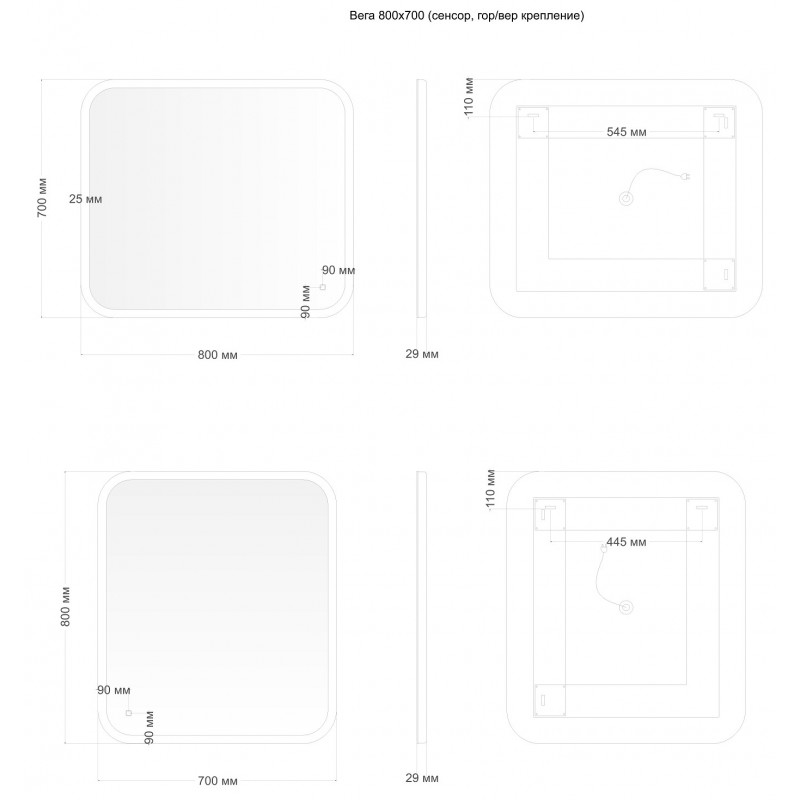 Зеркало для ванной комнаты Aquanet из коллекции Вега обладает современным дизайном и удобными функциями. Зеркало оснащено светодиодной подсветкой, которая обеспечивает яркое и равномерное освещение ванной комнаты. Сенсорный выключатель позволяет легко управлять подсветкой, а регулировка яркости позволяет адаптировать освещение под различные потребности. Это зеркало имеет возможность крепления на стену как в горизонтальном, так и вертикальном положении, что обеспечивает гибкость в установке в соответствии с дизайном ванной комнаты. Корпус зеркала изготовлен из практичного и прочного пластика, что облегчает его конструкцию и делает легким уход за ним. Функция подогрева отсутствует. Зеркало для ванной с LED подсветкой Aquanet Вега представляет собой стильное и функциональное решение, обеспечивая хорошее освещение и превосходное зеркальное отражение.