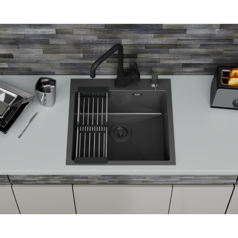 В комплект стальной мойки D&K входит - чаша мойки, комплект крепежей, сифон, выпуск с переливом, корзина, дозатор, паспорт изделия.